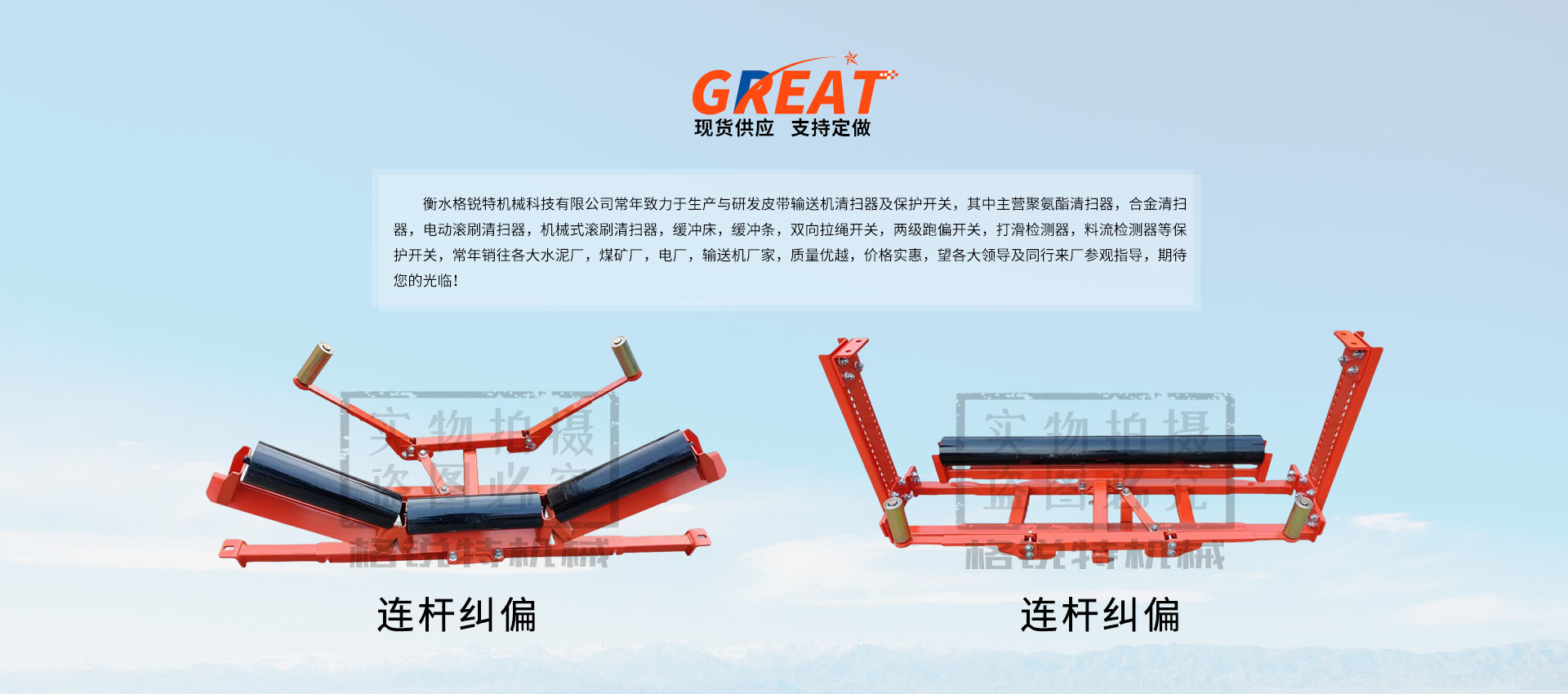 衡水格銳特機(jī)械科技有限公司常年致力于生產(chǎn)與研發(fā)皮帶輸送機(jī)清掃器及保護(hù)開(kāi)關(guān),其中主營(yíng)聚氨酯清掃器,合金清掃器,電動(dòng)滾刷清掃器,機(jī)械式滾刷清掃器,緩沖床,緩沖條,雙向拉繩開(kāi)關(guān),兩級(jí)跑偏開(kāi)關(guān),打滑檢測(cè)器,料流檢測(cè)器等保護(hù)開(kāi)關(guān),常年銷往各大水泥廠,煤礦廠,電廠,輸送機(jī)廠家,質(zhì)量?jī)?yōu)越,價(jià)格實(shí)惠,望各大領(lǐng)導(dǎo)及同行來(lái)廠參觀指導(dǎo),期待您的光臨!!!